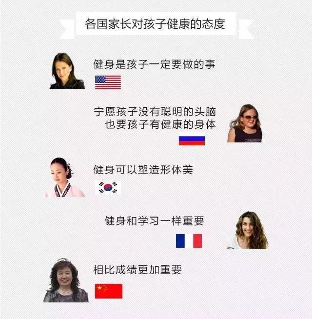 那么为什么中国的孩子都“不喜欢”健身呢?先来看看各国家长对孩子健身的态度: