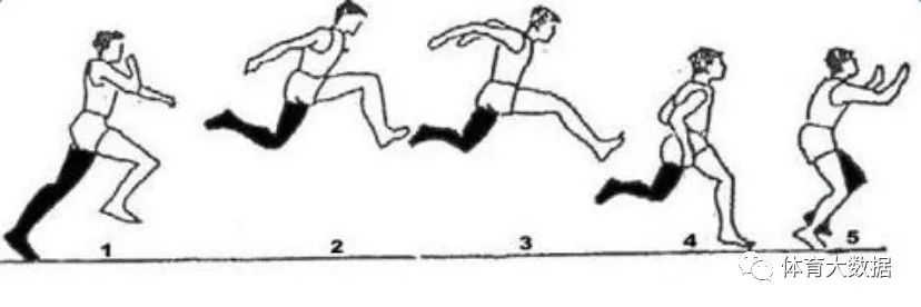 纠正方法:教师在学生练习时喊口令:“1-2-3”来帮助体育考生掌握跳跃节奏,教师根据体育考生的跳跃能力在地面上做记号,让体育考生逐步掌握三跳的合理距离分配,使体育考生明确三跳过程中空中轨迹“步步高”的道理。另外注意第二跳落地的支撑脚是由脚跟迅速滚动到脚前掌的过程。