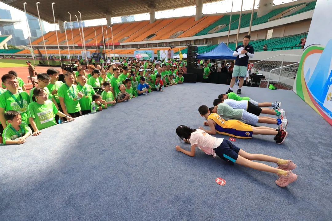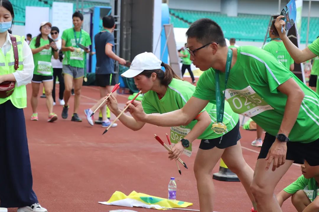 在体力和耐力的较量下,半小时内已经有不少跑友顶着淋漓大汗,顺利冲过终点线,为自己添上一枚金灿灿的奖牌。