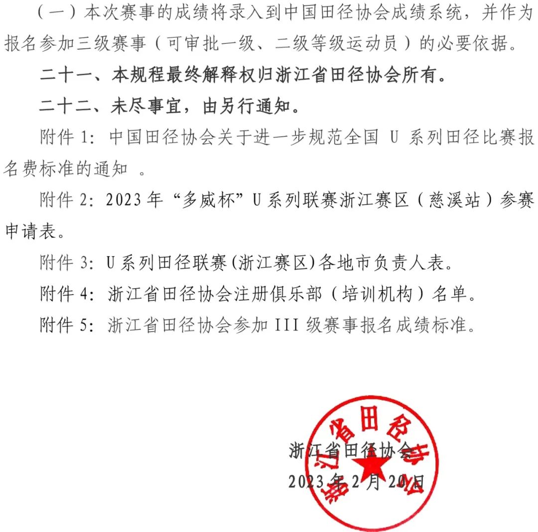 附件5:浙江省田径协会参加III级赛事报名成绩标准。
