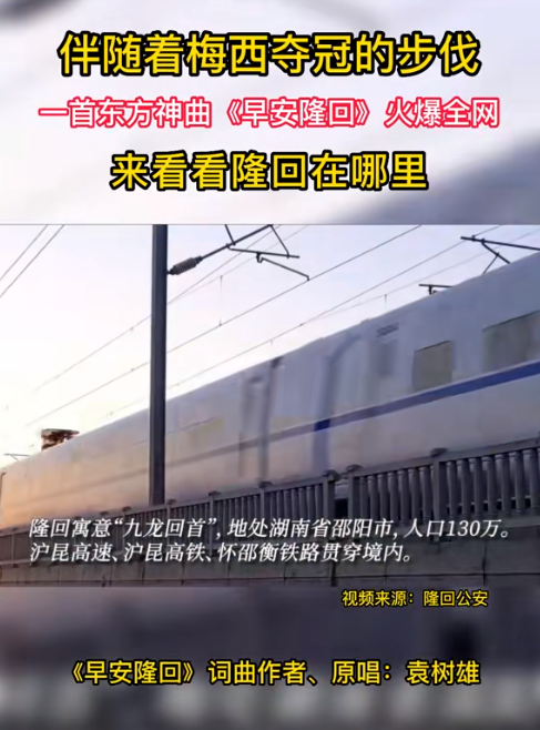 卡塔尔世界杯落幕之际,一首中国“神曲”《早安隆回》火爆赛场内外,朗朗上口的歌词和催人奋进的旋律以及网友配编的世界杯精彩画面,迅速风靡整个网络并引发海量翻拍翻唱。短短几天时间,抖音播放量超150亿次,微信视频号播放量超120亿次,百度搜索关联信息879万条,歌曲飙升至各大音乐网榜单榜首。