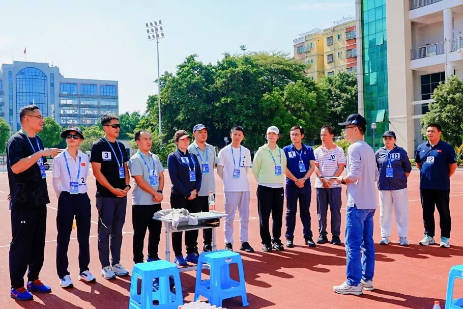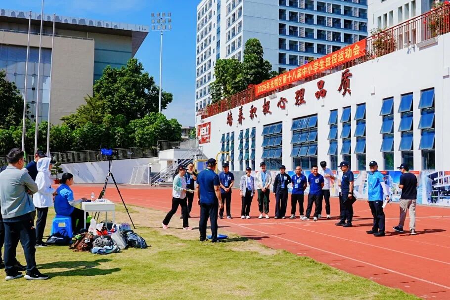 为帮助学员理解和掌握规则,根据培训计划,在深圳市光明区公明中学开展了实操考核。考核以小组为单位有序推进,依次完成检录、起点发令、终点成绩判定,以及跳高、跳远、投掷项目的实操考核,全程衔接紧密、流程规范。